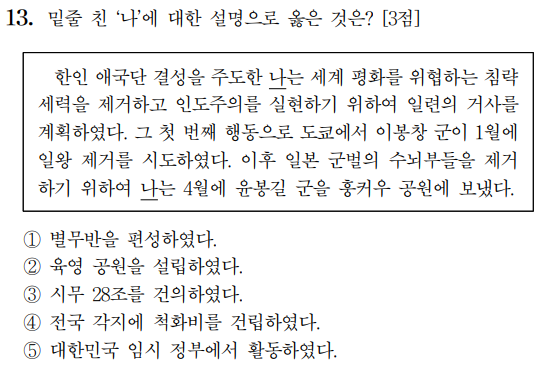 ⑤ 한인애국단은 대한민국 임시 정부 산하에 있는 기관입니다.