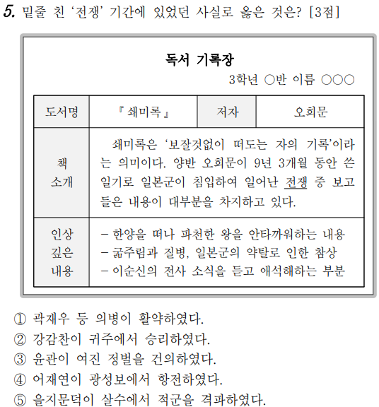 일본군이 쳐들어 온 전쟁... 한양에서 파천한 왕... 바로 선조입니다. 이순신의 전사... 전반적 내용을 보면 임진왜란(1592년)임을 알 수 있습니다.