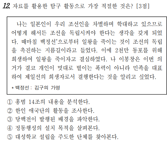 2024학년도 3월 고3 전국연합학력평가 문제지 한국사 문제 12번 풀이