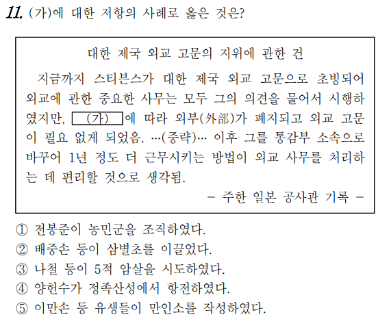 2024학년도 3월 고3 전국연합학력평가 문제지 한국사 문제 11번 풀이