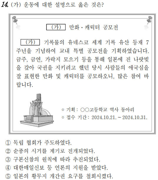 2024학년도 3월 고3 전국연합학력평가 문제지 한국사 문제 14번 풀이