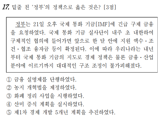2024학년도 3월 고3 전국연합학력평가 문제지 한국사 문제 17번 풀이