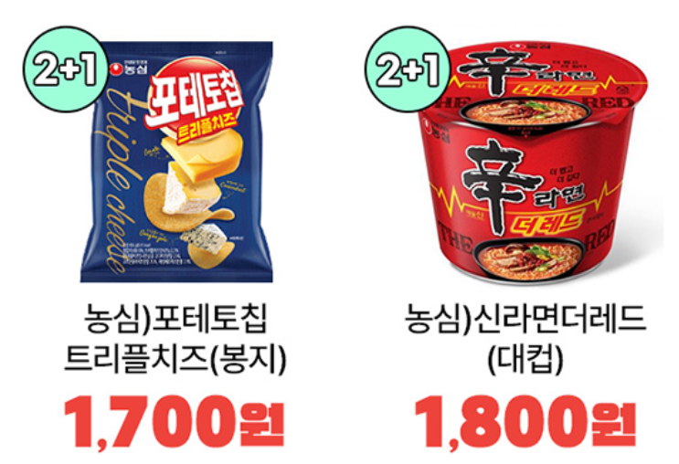 편의점 상품의 가장 큰 혜택을 1+1 혹은 2+1 상품들이 있다는 것입니다. 낱개로 살때보다 저렴하게 살수있고 경우에 따라서는 대형마트나 동네 마트보다 저렴하게 구입할 수 있다는 장점이 있습니다